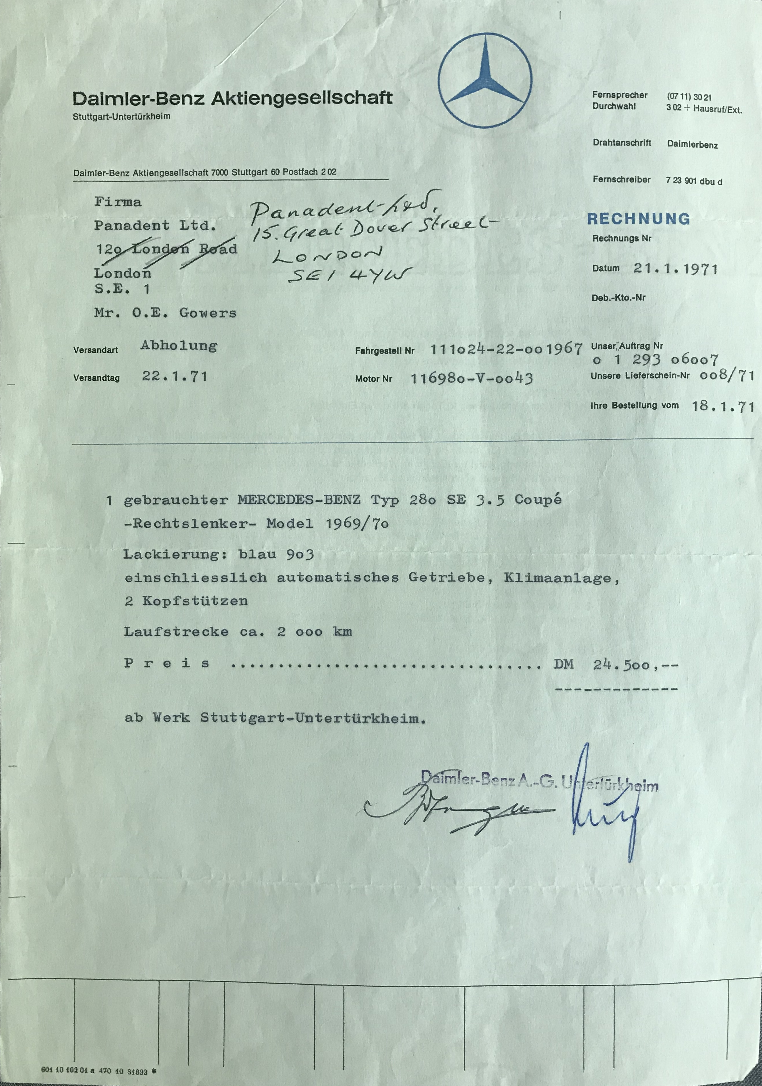 Mercedes Benz 280se 3.5 Coupe Pre-production
